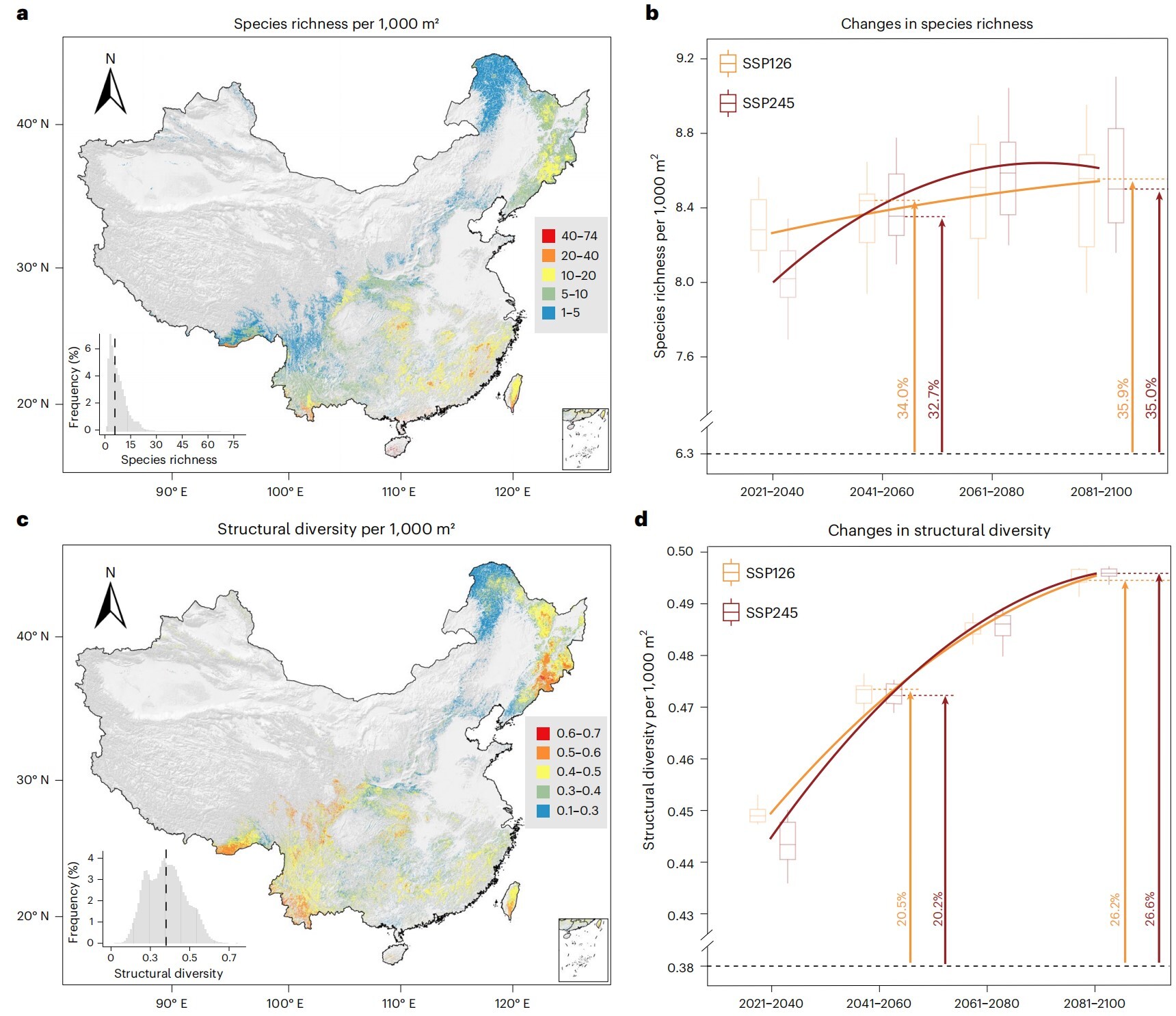 2025-11-28Researchers Unveil First High-Resolution Maps of China’s Forest Diversity PatternsUsing a spatially representative dataset of more than 300,000 trees from nearly 3,400 natural forest plots, this study provides the first comprehensive assessment of the fine-scale spatial patterns, drivers, and future potential of tree species richness and structural diversity across China’s natural forests. A research team led by the South China Botanical Garden of the Chinese Academy of Sciences, in collaboration with multiple domestic and international research institutions, has made progress in investigating forest diversity patterns across China. The findings were recently published in Nature Ecology & Evolution. Article Link: https://doi.org/1...Read More